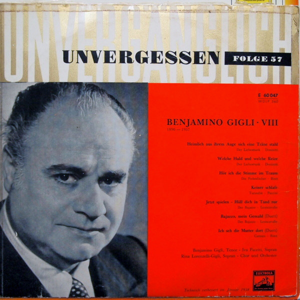 Benjamino Gigli - VIII / Benjamino Gigli. - Nowa wersja. - Germany: Electrola, 1958. - 1 płyta: analogowa, 33 o/min, stereo. ; 30 cm.